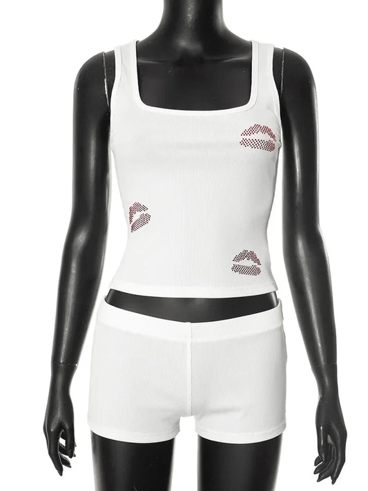 Rhinestone Kiss Detail Tank & Shorts Co-Ord | Reigned