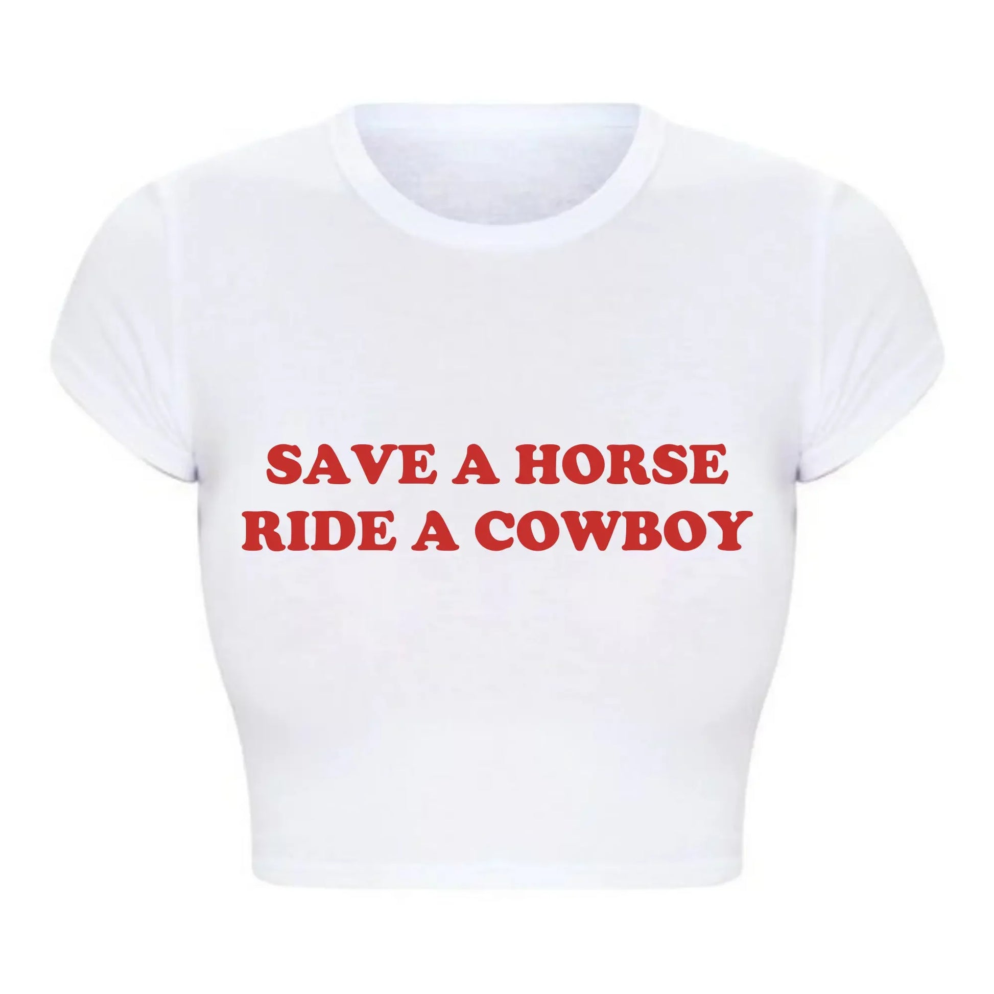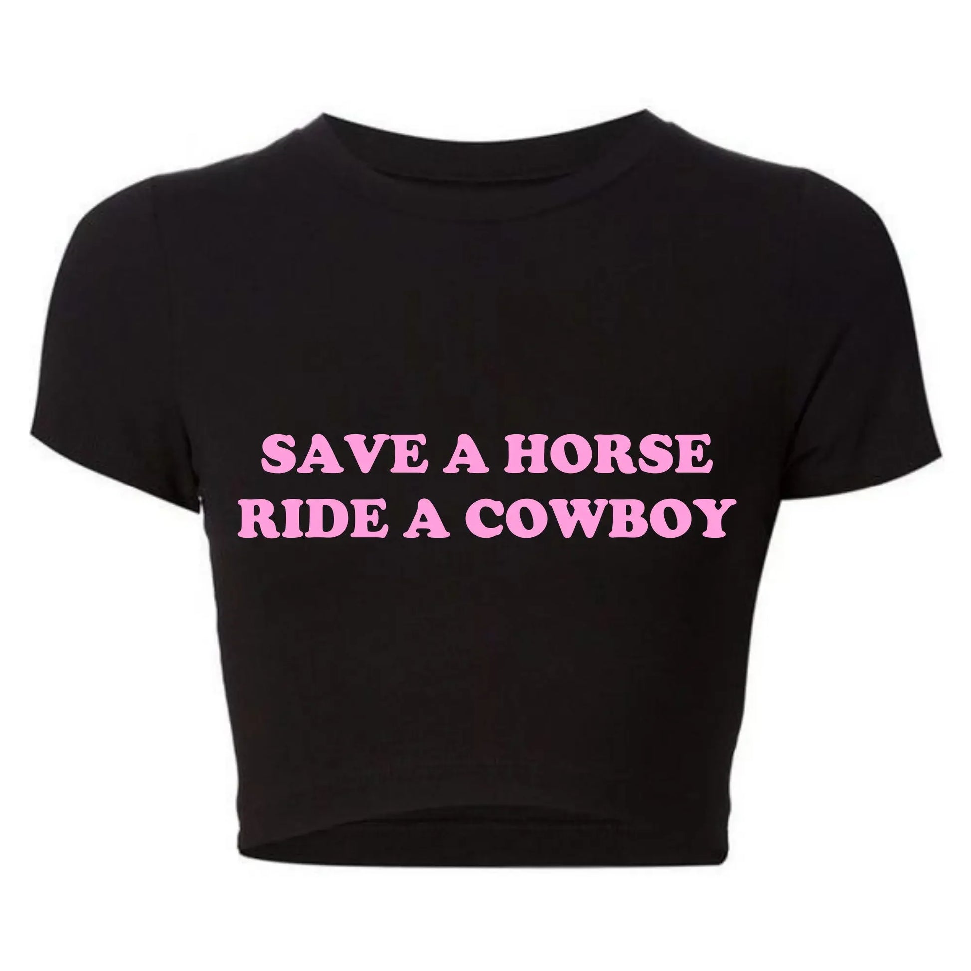 Save A Horse Ride A Cowboy Tight Fit Crop Top