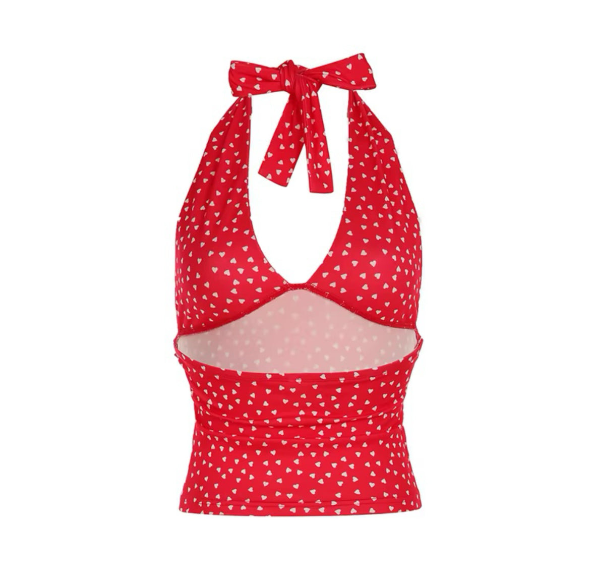 The Deep V-Neck Tie-Up Tight Fit Halter Top embraces coquette charm with a sultry, feminine touch. Designed with a plunging V-neckline, this top features a delicate tie-up front that enhances its flirty appeal. The tight fit flatters your silhouette, while the halter design accentuates the shoulders for an effortlessly elegant look. Perfect for pairing with lace-trimmed skirts, low-rise jeans, or dainty accessories, this top is a must-have for a romantic and stylish outfit.